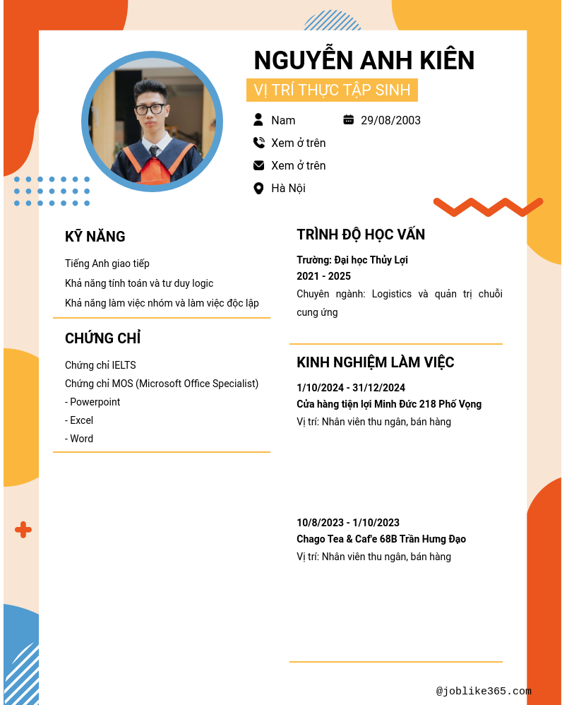 Xem hồ sơ ứng viên NGUYỄN ANH KIÊN cần 2 điểm. Hồ sơ được cập nhật ngày: 01/12/2024