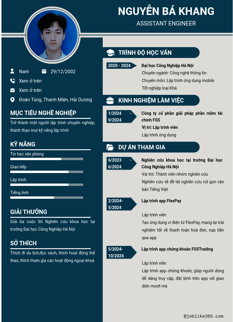 Xem hồ sơ ứng viên Nguyễn Bá Khang cần 2 điểm. Hồ sơ được cập nhật ngày: 30/10/2024