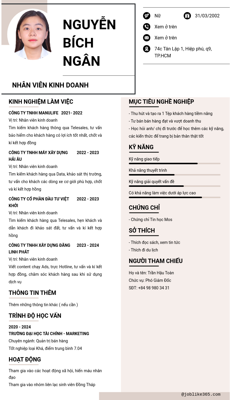 Xem hồ sơ ứng viên Nguyễn bích ngân cần 2 điểm. Hồ sơ được cập nhật ngày: 30/10/2024