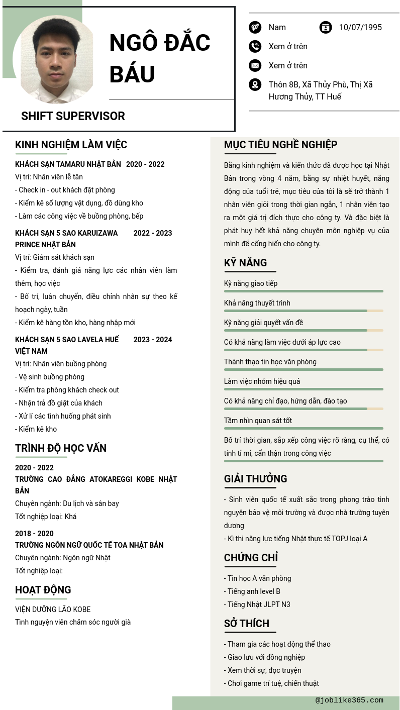 Xem hồ sơ ứng viên NGÔ ĐẮC BÁU cần 2 điểm. Hồ sơ được cập nhật ngày: 25/07/2024