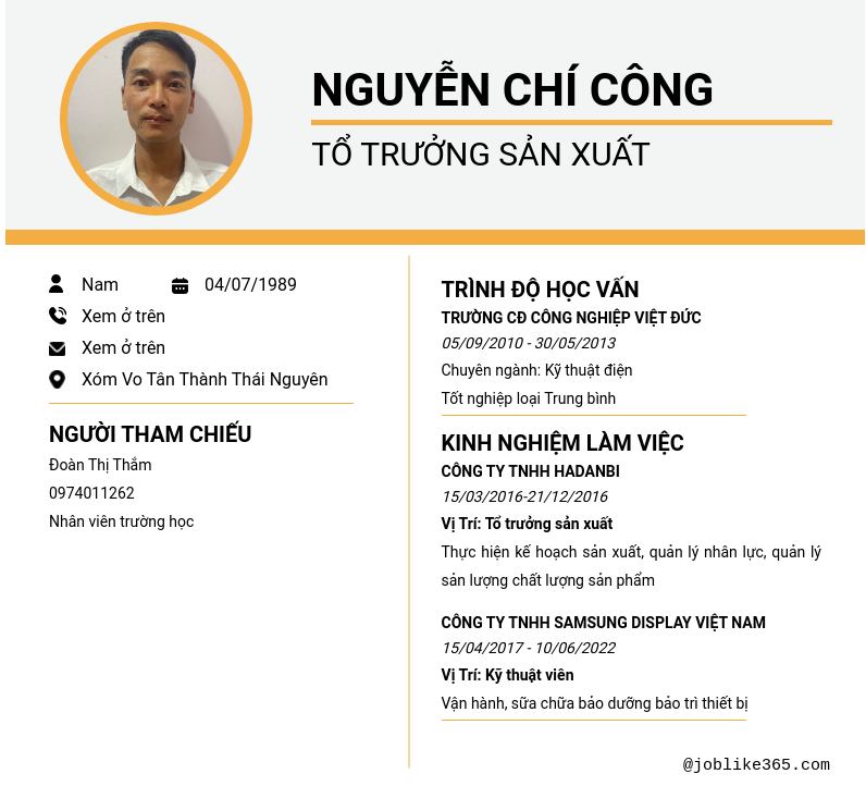 Xem hồ sơ ứng viên NGUYỄN CHÍ CÔNG cần 2 điểm. Hồ sơ được cập nhật ngày: 08/08/2025