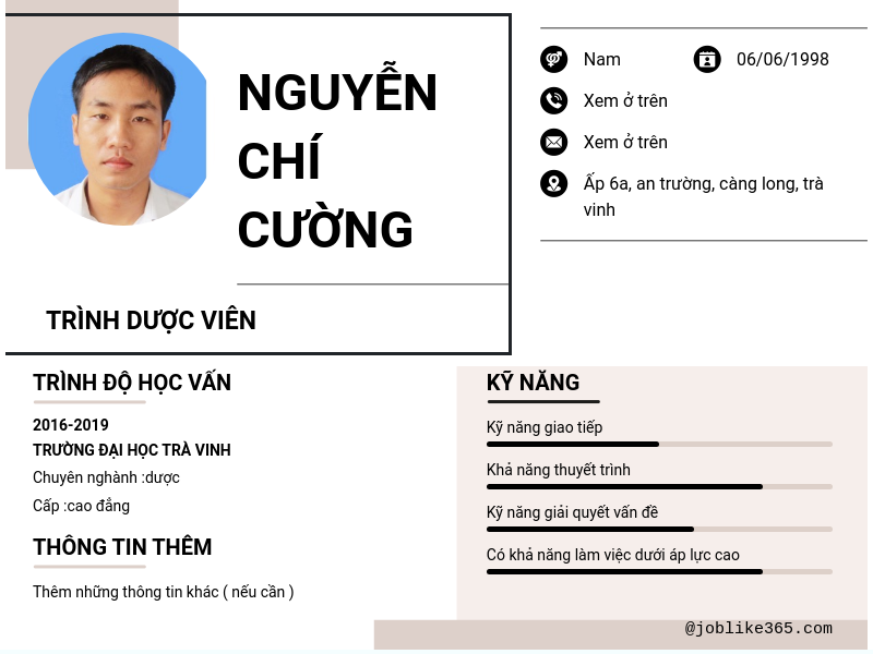 Xem hồ sơ ứng viên Nguyễn chí cường cần 2 điểm. Hồ sơ được cập nhật ngày: 18/09/2024