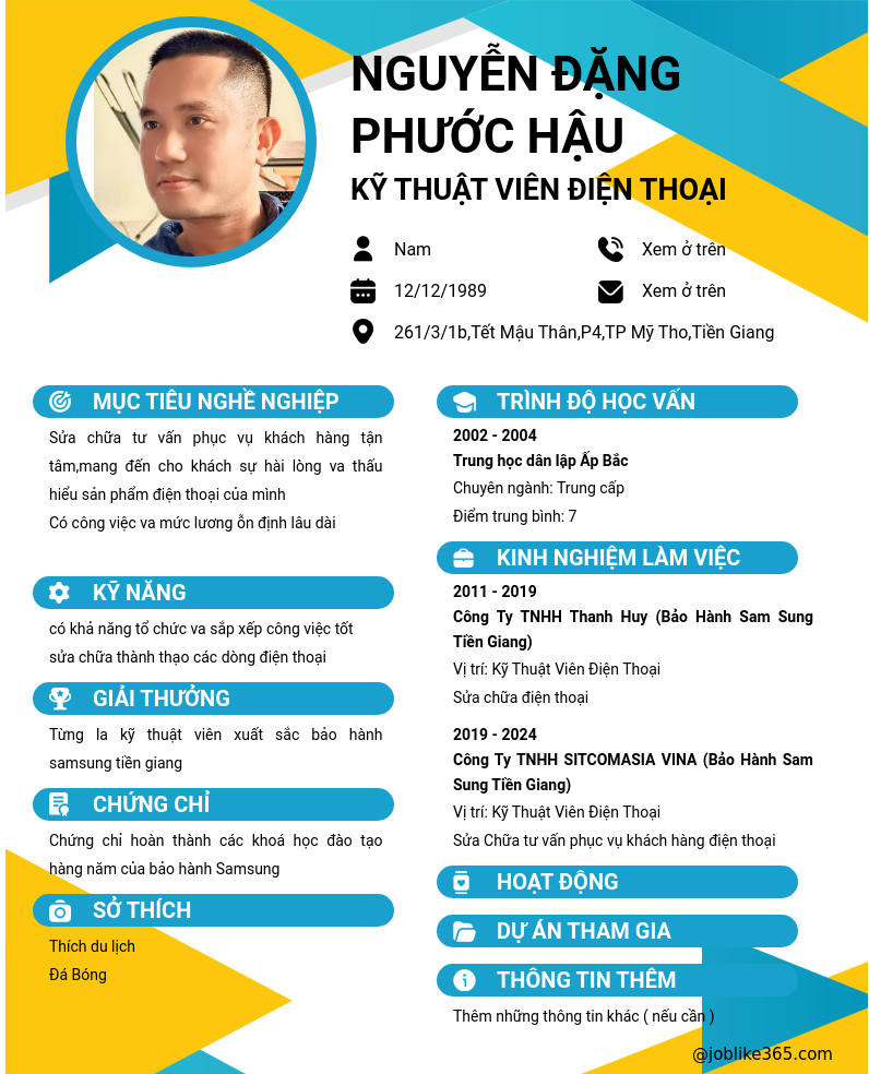 Xem hồ sơ ứng viên NGUYỄN ĐẶNG PHƯỚC HẬU cần 2 điểm. Hồ sơ được cập nhật ngày: 03/07/2024