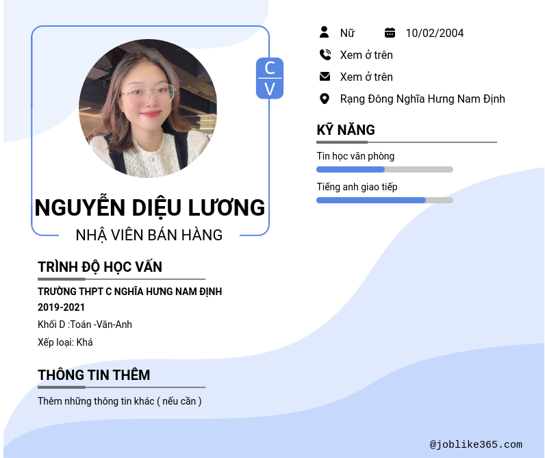 Xem hồ sơ ứng viên Nguyễn Diệu Lương cần 2 điểm. Hồ sơ được cập nhật ngày: 13/06/2025