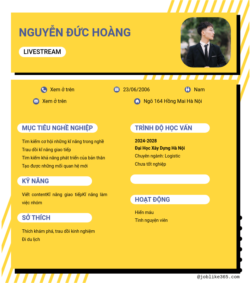 Xem hồ sơ ứng viên Nguyễn Đức Hoàng cần 2 điểm. Hồ sơ được cập nhật ngày: 02/10/2024