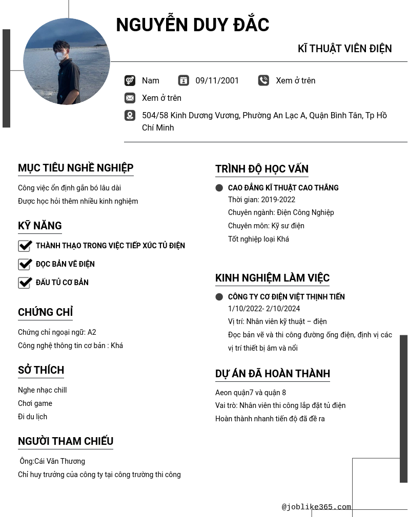 Xem hồ sơ ứng viên NGUYỄN DUY ĐẮC cần 2 điểm. Hồ sơ được cập nhật ngày: 04/10/2024