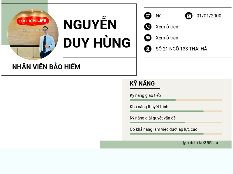 Xem hồ sơ ứng viên NGUYỄN DUY HÙNG cần 2 điểm. Hồ sơ được cập nhật ngày: 28/08/2025