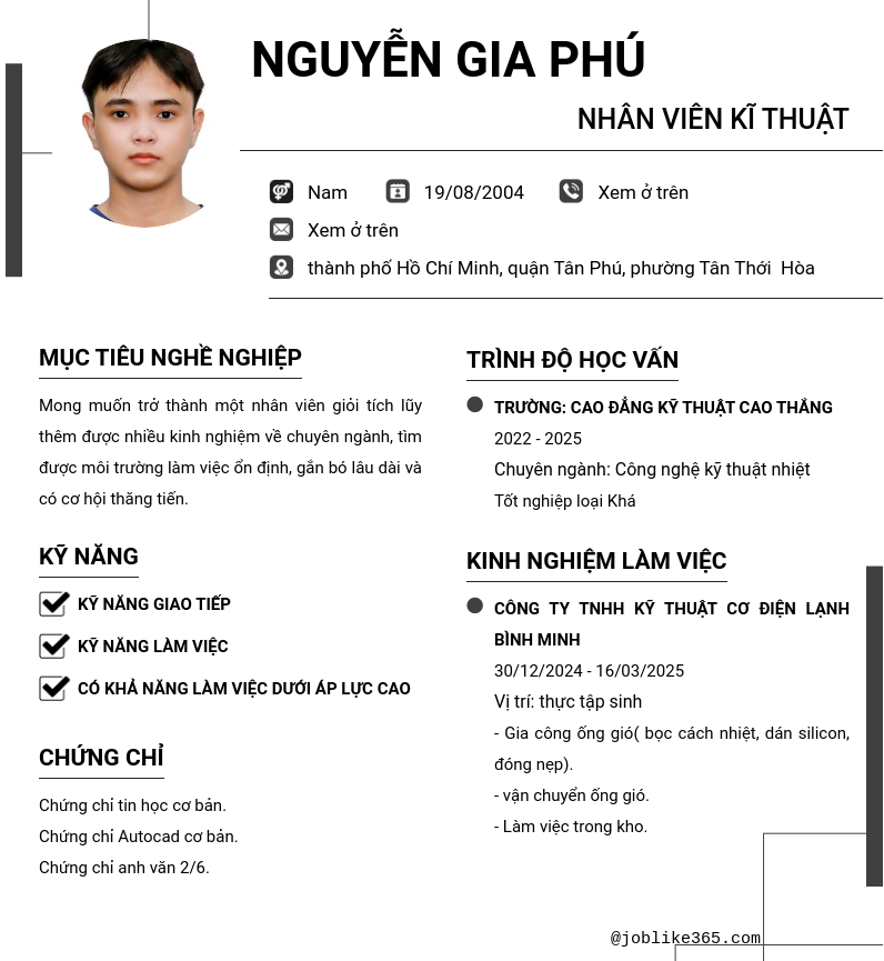 Xem hồ sơ ứng viên nguyễn gia phú cần 2 điểm. Hồ sơ được cập nhật ngày: 13/08/2025