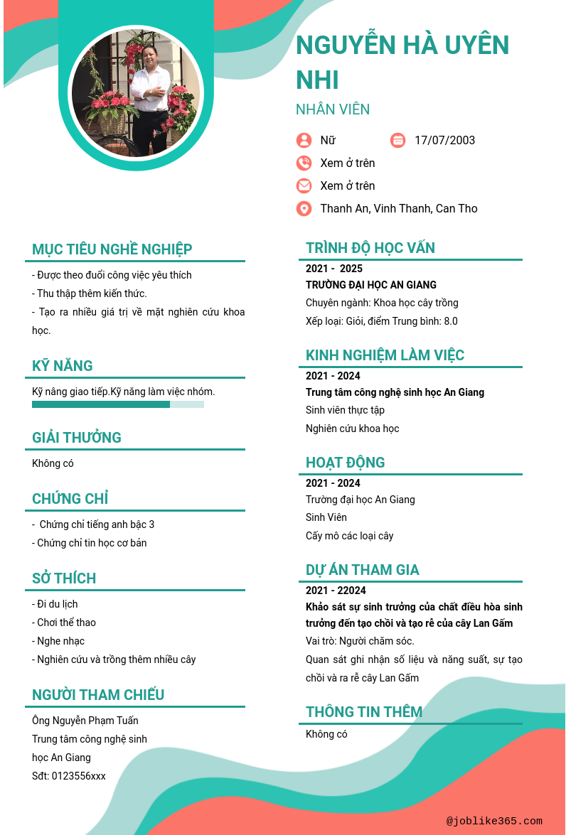 Xem hồ sơ ứng viên nguyễn hà uyên nhi cần 2 điểm. Hồ sơ được cập nhật ngày: 09/11/2024