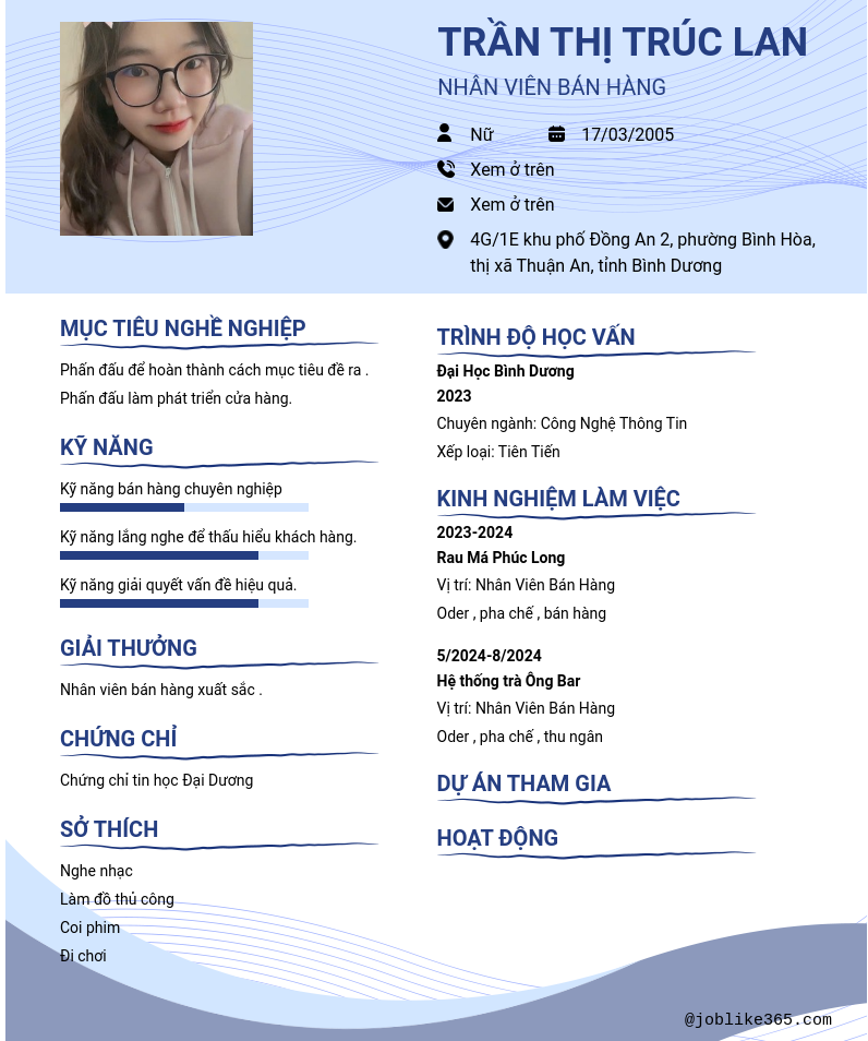Xem hồ sơ ứng viên Trần Thị Trúc Lan cần 2 điểm. Hồ sơ được cập nhật ngày: 16/10/2024