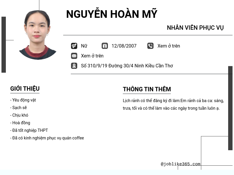 Chi tiết trong CV
