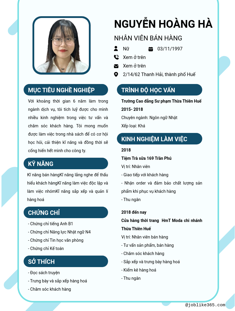 Xem hồ sơ ứng viên Nguyễn Hoàng Hà cần 2 điểm. Hồ sơ được cập nhật ngày: 08/08/2024