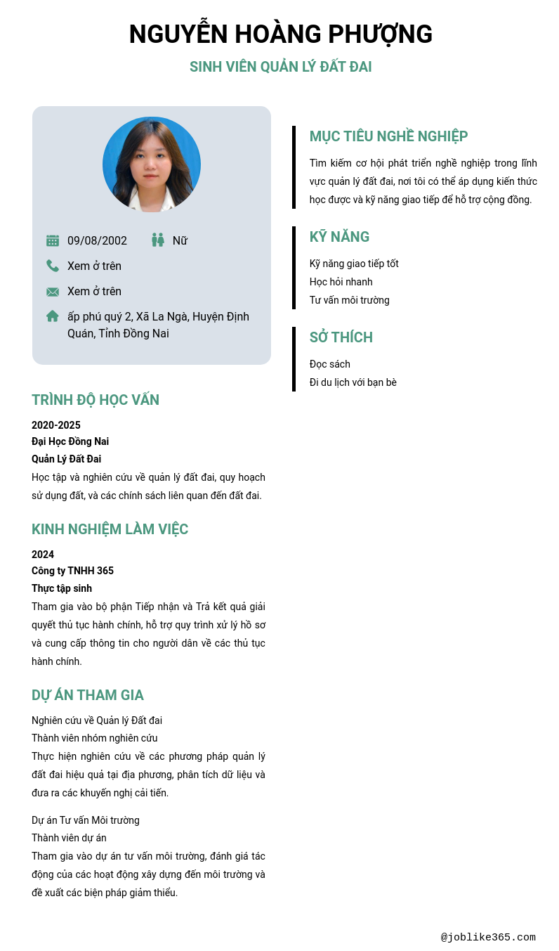 Xem hồ sơ ứng viên nguyễn hoàng phượng cần 2 điểm. Hồ sơ được cập nhật ngày: 15/05/2025