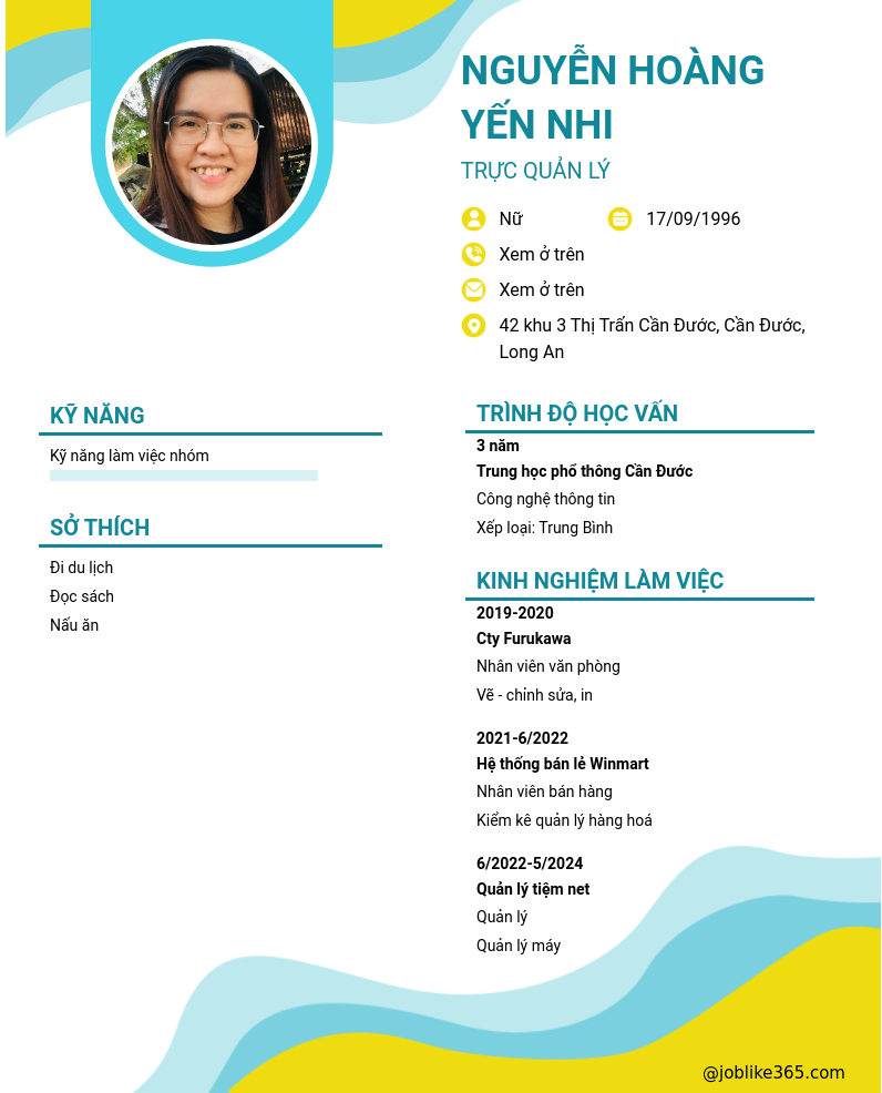 Xem hồ sơ ứng viên NGUYỄN HOÀNG YẾN NHI cần 2 điểm. Hồ sơ được cập nhật ngày: 27/05/2024