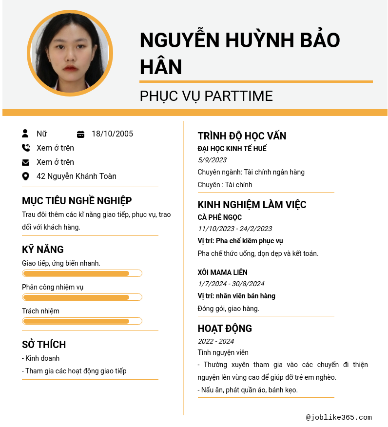 Xem hồ sơ ứng viên NGUYỄN HUỲNH BẢO HÂN cần 2 điểm. Hồ sơ được cập nhật ngày: 23/09/2024