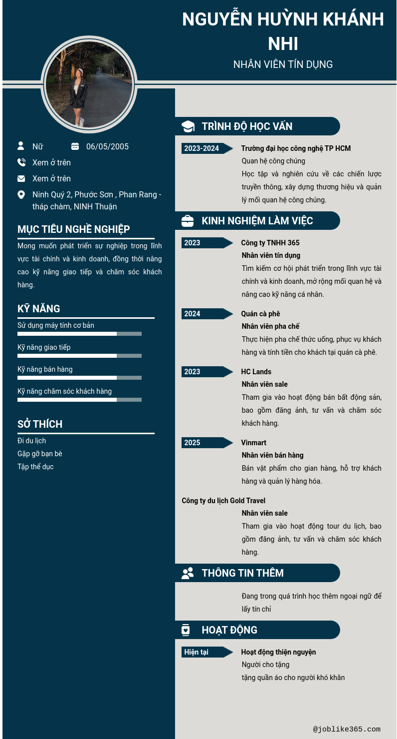 Xem hồ sơ ứng viên Nguyễn Huỳnh Khánh Nhi cần 2 điểm. Hồ sơ được cập nhật ngày: 03/06/2025