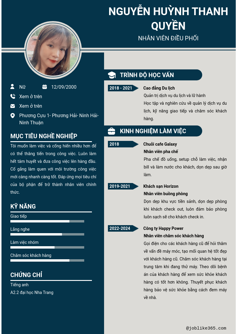 Xem hồ sơ ứng viên NGUYỄN HUỲNH THANH QUYỀN cần 2 điểm. Hồ sơ được cập nhật ngày: 03/09/2025