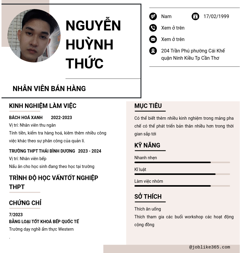 Xem hồ sơ ứng viên NGUYỄN HUỲNH THỨC cần 2 điểm. Hồ sơ được cập nhật ngày: 30/09/2024