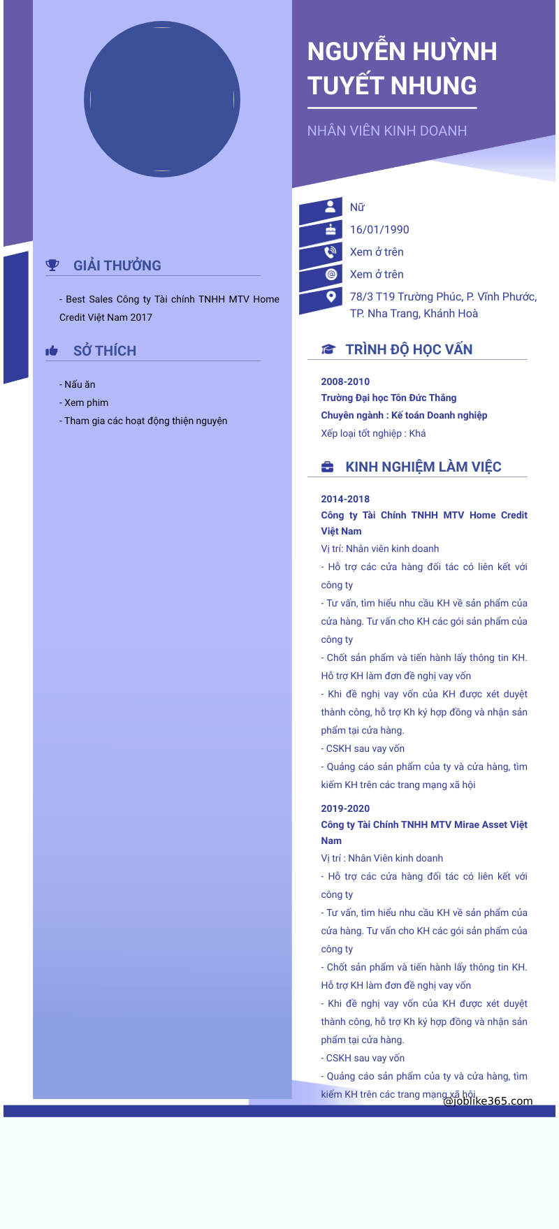 Xem hồ sơ ứng viên NGUYỄN HUỲNH TUYẾT NHUNG cần 2 điểm. Hồ sơ được cập nhật ngày: 15/10/2024