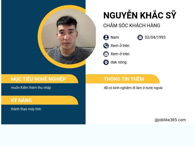 Xem hồ sơ ứng viên NGUYỄN KHẮC SỸ cần 2 điểm. Hồ sơ được cập nhật ngày: 24/06/2024