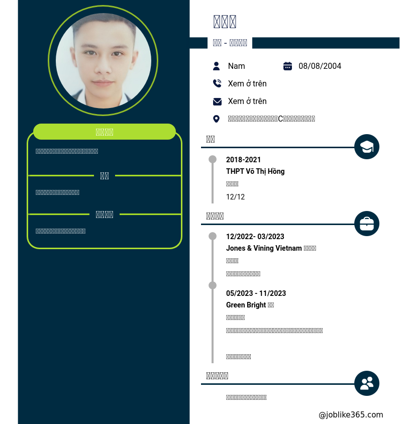 Xem hồ sơ ứng viên 阮克纯 cần 2 điểm. Hồ sơ được cập nhật ngày: 22/05/2024