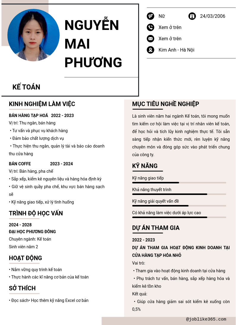 Xem hồ sơ ứng viên NGUYỄN MAI PHƯƠNG cần 2 điểm. Hồ sơ được cập nhật ngày: 11/10/2025