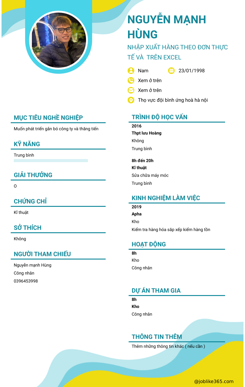 Xem hồ sơ ứng viên NGUYỄN MẠNH HÙNG cần 2 điểm. Hồ sơ được cập nhật ngày: 30/07/2024