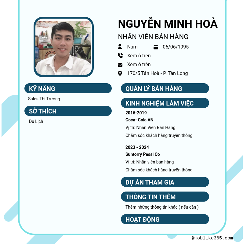 Xem hồ sơ ứng viên Nguyễn Minh Hoà cần 2 điểm. Hồ sơ được cập nhật ngày: 04/02/2025