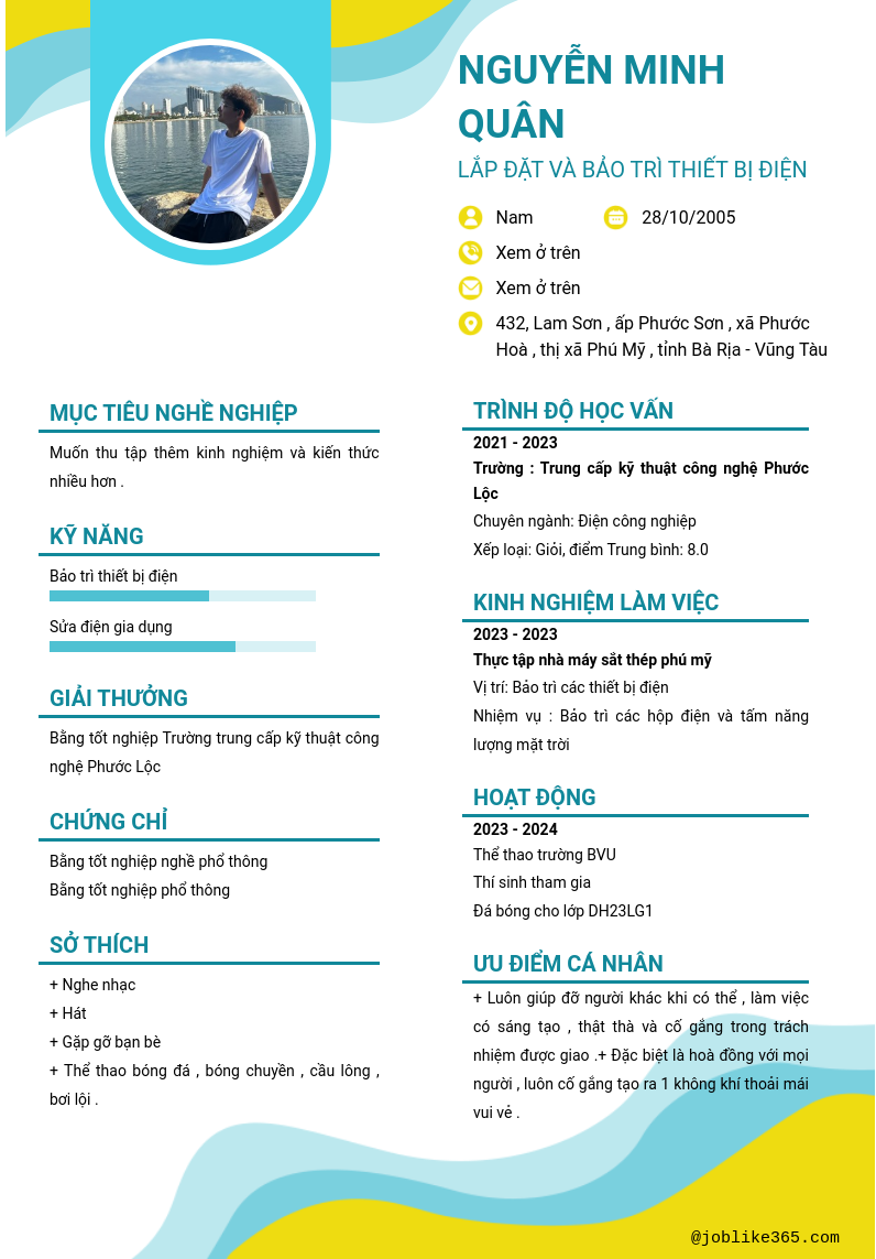 Xem hồ sơ ứng viên Nguyễn Minh Quân cần 2 điểm. Hồ sơ được cập nhật ngày: 02/01/2025