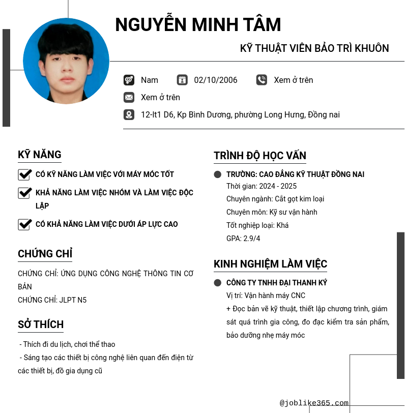 Xem hồ sơ ứng viên nguyễn minh tâm cần 2 điểm. Hồ sơ được cập nhật ngày: 24/02/2026
