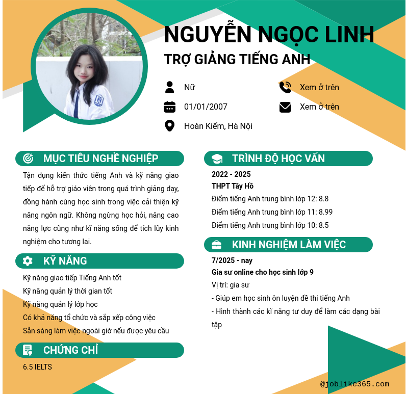 Xem hồ sơ ứng viên nguyễn ngọc linh cần 2 điểm. Hồ sơ được cập nhật ngày: 11/08/2025