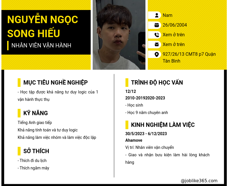 Xem hồ sơ ứng viên NGUYỄN NGỌC SONG HIẾU cần 2 điểm. Hồ sơ được cập nhật ngày: 07/06/2024