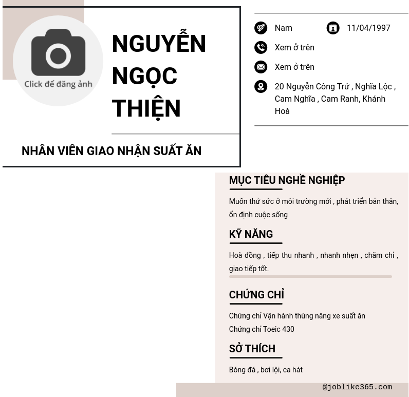 Xem hồ sơ ứng viên Nguyễn Ngọc Thiện cần 2 điểm. Hồ sơ được cập nhật ngày: 16/06/2025