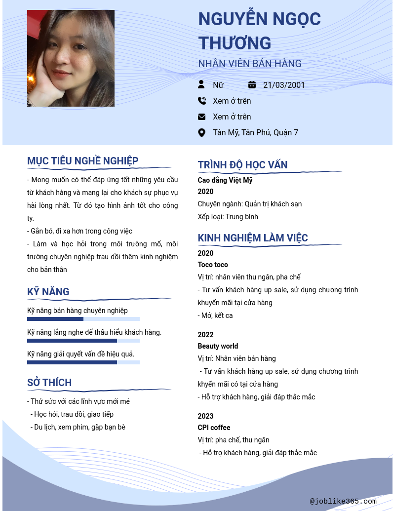 Xem hồ sơ ứng viên Nguyễn Ngọc Thương cần 2 điểm. Hồ sơ được cập nhật ngày: 06/10/2024