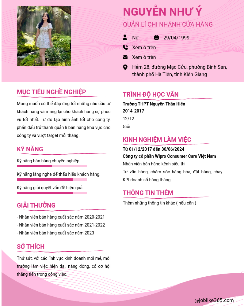 Xem hồ sơ ứng viên NGUYỄN NHƯ Ý cần 2 điểm. Hồ sơ được cập nhật ngày: 30/05/2024