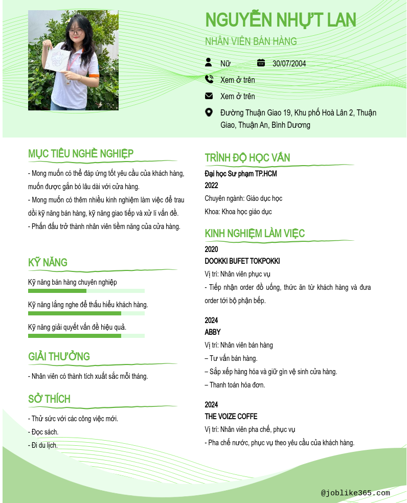 Xem hồ sơ ứng viên NGUYỄN NHỰT LAN cần 2 điểm. Hồ sơ được cập nhật ngày: 21/07/2024