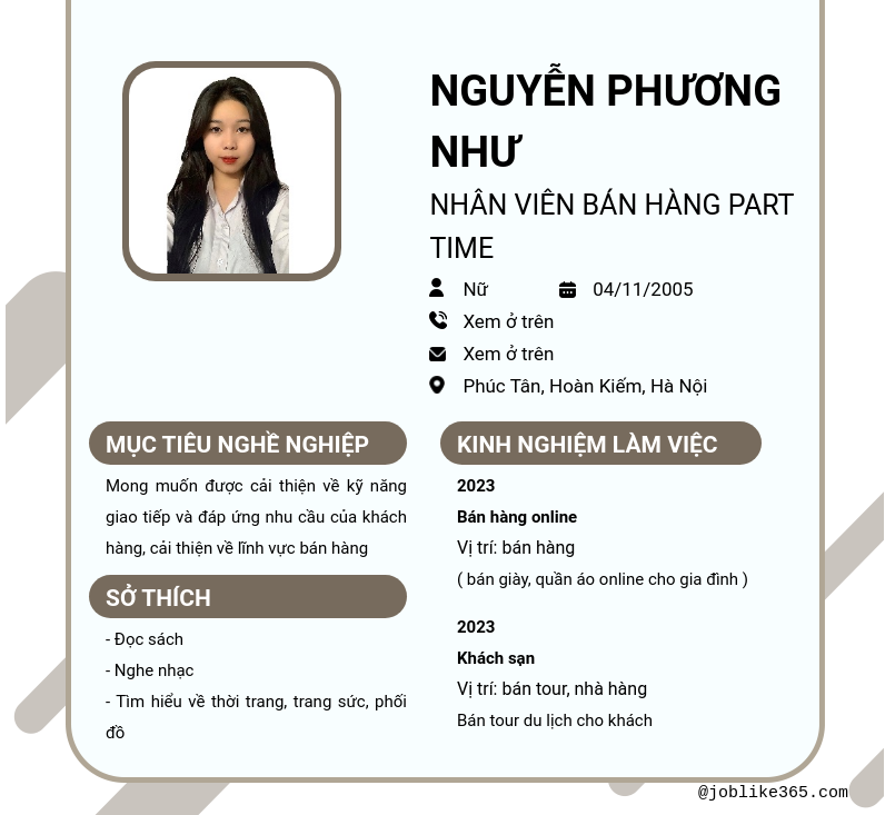 Xem hồ sơ ứng viên Nguyễn Phương Như cần 2 điểm. Hồ sơ được cập nhật ngày: 10/09/2024