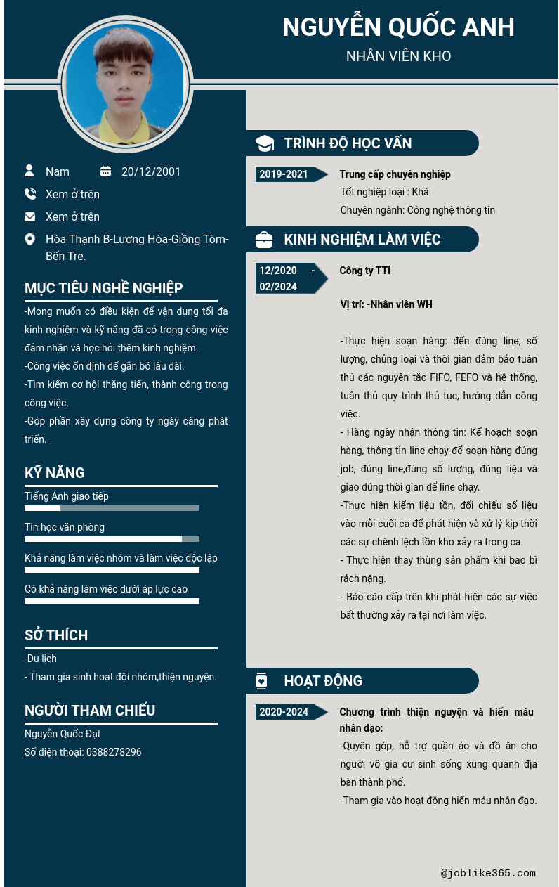 Xem hồ sơ ứng viên Nguyễn quốc anh cần 2 điểm. Hồ sơ được cập nhật ngày: 14/12/2024