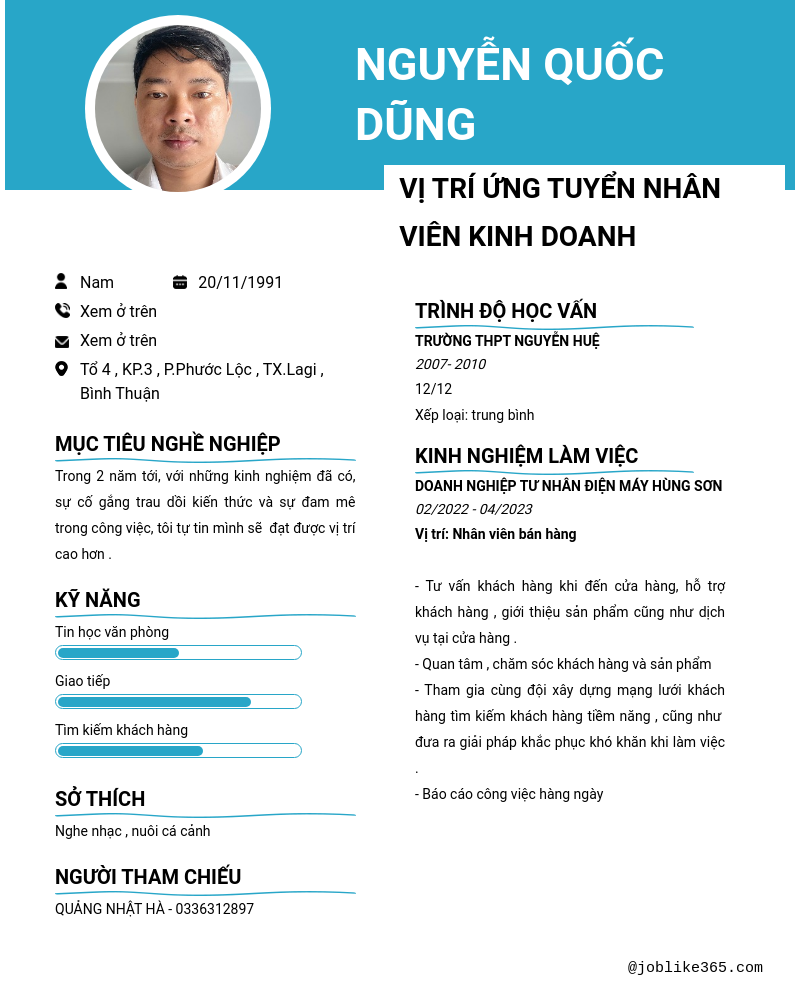 Xem hồ sơ ứng viên nguyễn quốc dũng cần 2 điểm. Hồ sơ được cập nhật ngày: 30/09/2024