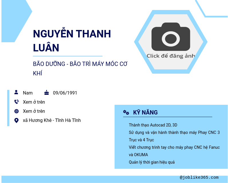 Xem hồ sơ ứng viên NGUYỄN THANH LUÂN cần 2 điểm. Hồ sơ được cập nhật ngày: 15/11/2025