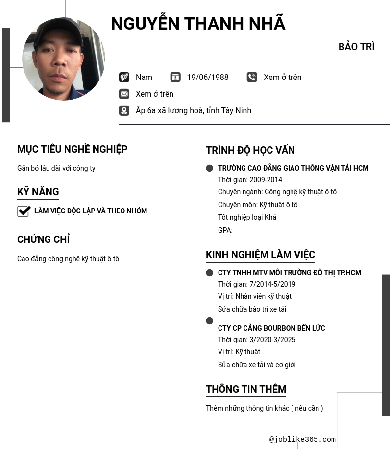 Xem hồ sơ ứng viên Nguyễn Thanh Nhã cần 2 điểm. Hồ sơ được cập nhật ngày: 08/08/2025