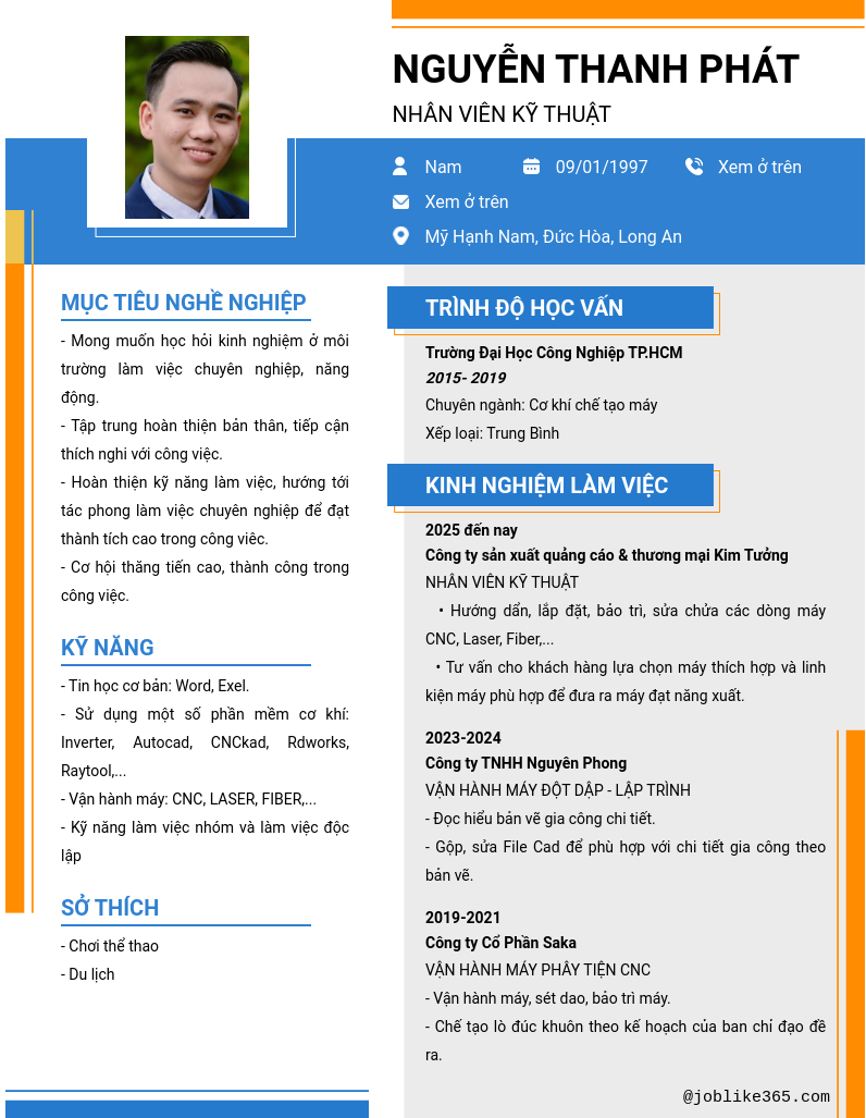 Xem hồ sơ ứng viên NGUYỄN THANH PHÁT cần 2 điểm. Hồ sơ được cập nhật ngày: 29/08/2025