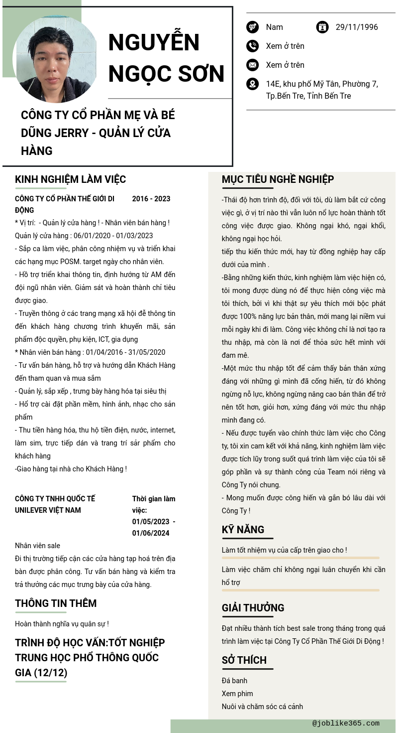 Xem hồ sơ ứng viên NGUYỄN NGỌC SƠN cần 2 điểm. Hồ sơ được cập nhật ngày: 25/09/2024