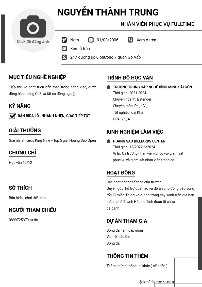 Xem hồ sơ ứng viên Nguyễn Thành Trung cần 2 điểm. Hồ sơ được cập nhật ngày: 07/10/2024