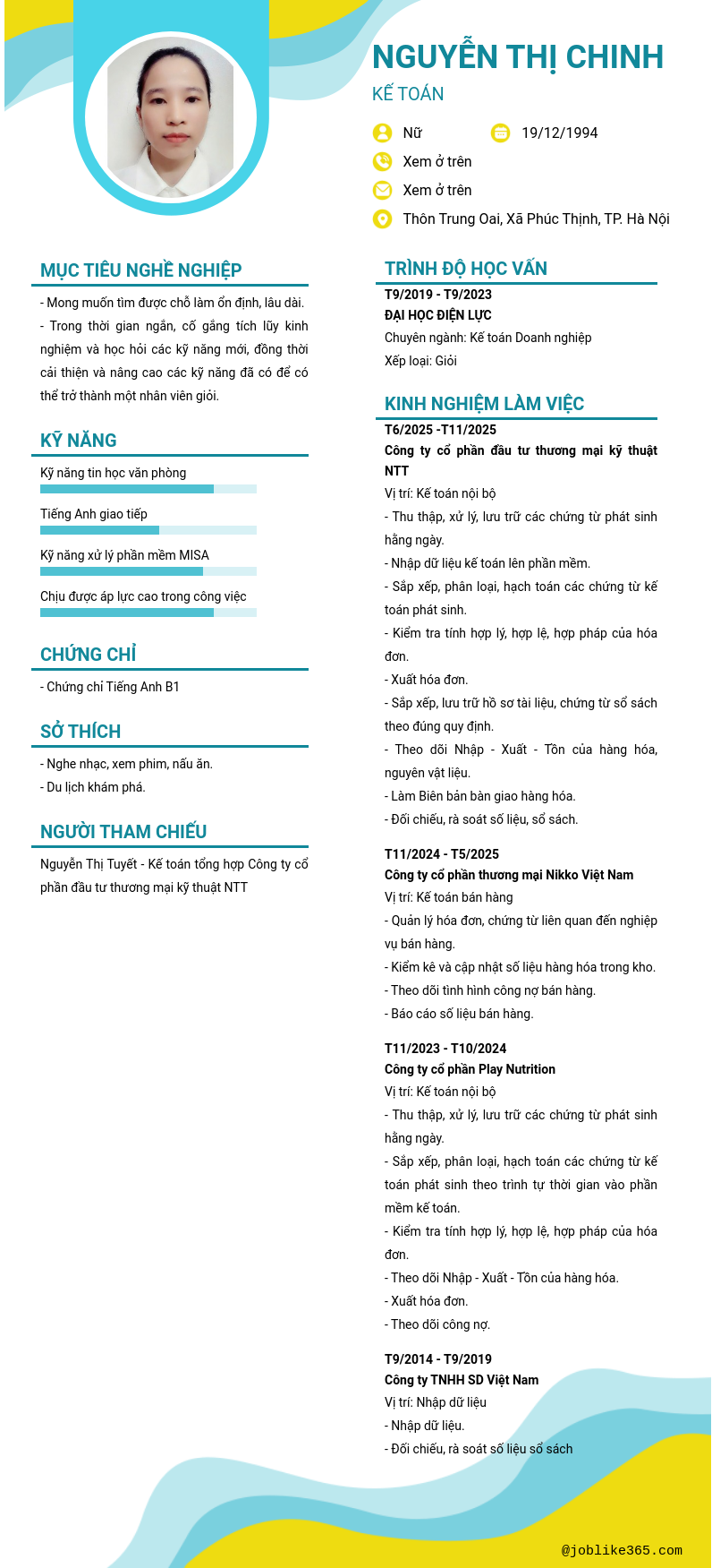 Xem hồ sơ ứng viên cần 2 điểm. Hồ sơ được cập nhật ngày: 23/12/2025
