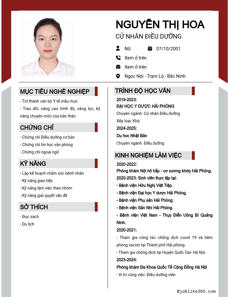 Xem hồ sơ ứng viên NGUYỄN THỊ HOA cần 2 điểm. Hồ sơ được cập nhật ngày: 24/09/2025