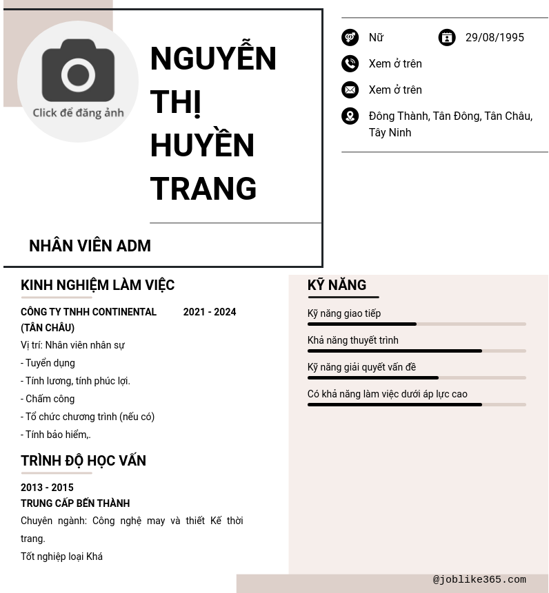 Xem hồ sơ ứng viên nguyễn thị huyền trang cần 2 điểm. Hồ sơ được cập nhật ngày: 14/03/2025