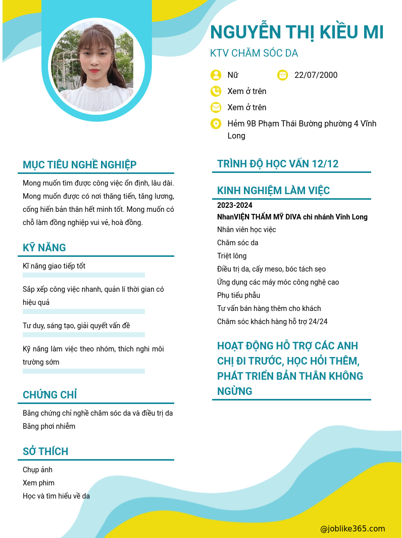 Xem hồ sơ ứng viên NGUYỄN THỊ KIỀU MI cần 2 điểm. Hồ sơ được cập nhật ngày: 04/03/2025