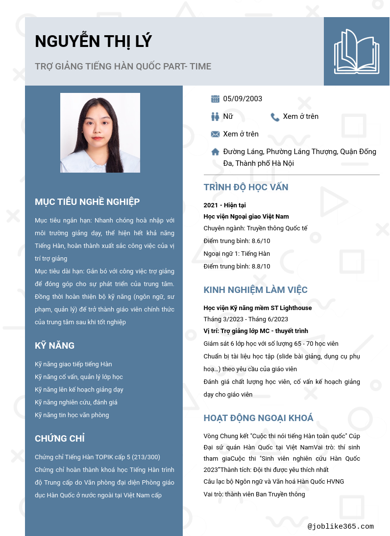 Xem hồ sơ ứng viên nguyễn thị lý cần 2 điểm. Hồ sơ được cập nhật ngày: 23/08/2024