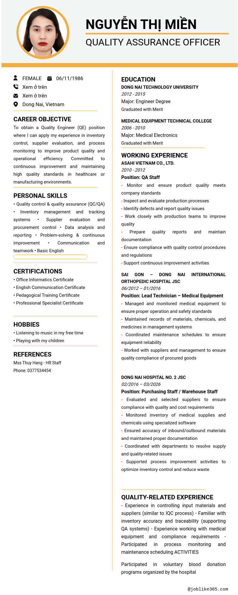 Xem hồ sơ ứng viên nguyễn thị miền cần 2 điểm. Hồ sơ được cập nhật ngày: 25/03/2026